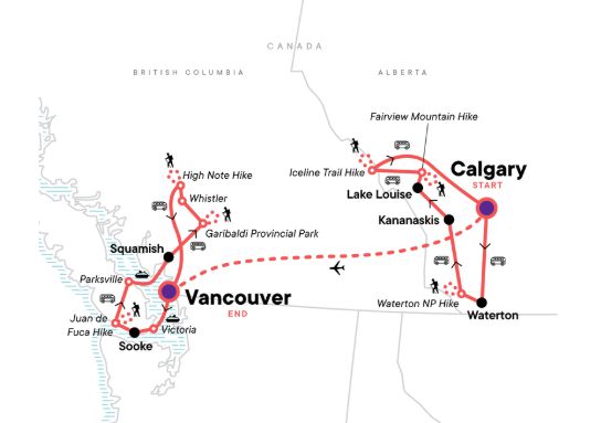 Take advantage of an adventure that will have you out hiking in both the Canadian Rockies and the coast of British Columbia on this 16-day tour from Calgary to Vancouver. Experience the Indigenous history, unforgettable landscapes, and lively cowboy culture of western Canada. Visit canyons, hike up mountains, come across alpine lakes, wander through Pacific rainforests, find yourself amid old growth forests, admire the emerald hue of Lake Louise, and witness stunning vistas. Explore a unique country and take advantage of endless opportunities to bond with other outdoor travelmates on this jam-packed journey.
